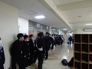 冷たい雨や風が吹いています。10分程度ですが、玄関にいるだけで震えあがってしまいます。<生徒会選挙活動>