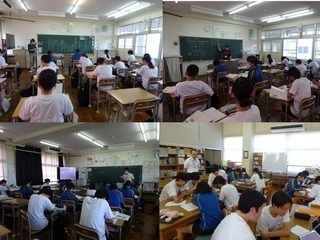 <授業の様子> 1年:国語、数学、3年:英語、音楽 2年生がいないと学校が静かと感じたのは、ほんの少しだけ。音楽祭に向けて曲が決まり、休み時間にも口ずさむ歌声が響いてきます。 週明けは全校がそろいます。またにぎやかになることでしょう。来週はいよいよ、前島密記念事業の演劇の上演となります。最後の新人戦も近づいてきます。体調を整えて過ごしましょう。