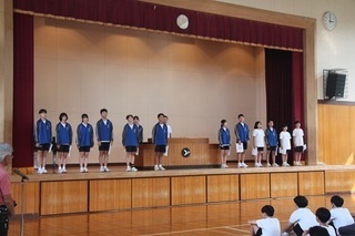 <後期級長・副級長任命式> 後期任命式がありました。この日は校長不在のため、教頭先生から、一人一人に任命書が手渡されました。 クラスの底力として仲間づくりをすすめていってください。