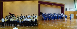 <学年合唱練習> 音楽祭練習が始まりました。学年合唱に力強い助っ人として、上野先生からおいでいただき、ご指導を受けることになりました。 休み時間にピアノ練習をしている演奏が聞こえてきたり、指揮者に特訓?する仲間の様子があったりしています。 三連休を迎えます。寒暖差のある日が続いていますので、体調管理に気を付けて過ごしましょう。