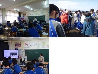3年:保体、理科、英語 理科では屋上に上がって、望遠鏡で太陽の黒点の観察をしました。もちろん太陽を直視はできませんので、影を映してみました。 はっきり黒点が映っているのを見ると、びっくりです。