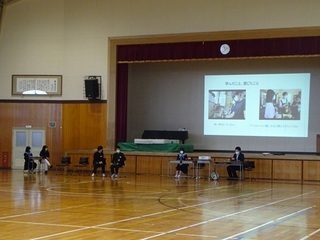 <職場体験発表会> 1限にリハーサルを行いました。明日の発表会を前に最終チェックです。 インフルエンザの罹患状況が増えています。ご家庭でも手洗い・うがいの徹底をお願いします。学校ではマスク着用をしばらく行います。