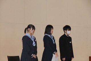 ポカポカ天気の終業式でした。<R8年度生徒会役員 任命式> 生徒会長、副会長の3名に任命書を渡しました。抱負を一人一人力強く語ってくれました。
