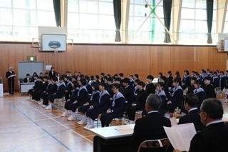 <第38回入学式> 43名の入学生を迎えました。ご来賓も大勢ご臨席いただき、お祝いいただきました。 1年生の返事や挨拶がいいとすぐに話題になっていました。