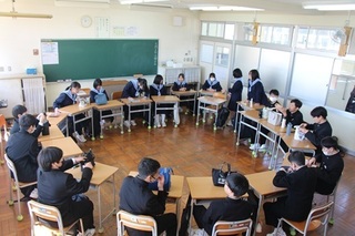 <入学式準備> 準備を進めてくれた新2年・3年生。てきぱきと動いて、転入してきた先生方がわからなくて「これは?」と尋ねても、教えてくれたり、動いてくれたりととても頼もしいですねと報告を受けました。 写真は2年生のお昼の時間の様子です。円になってお弁当を食べる姿、いいですね。 新年度初日でしたが、雄志中のいいところがたくさんあふれていました。この生徒たちが、夢や希望に向かって邁進できるよう、職員一同尽力してまいります。よろしくお願いいたします。
