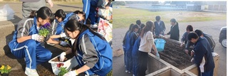 チューリップの球根や、パンジーの苗を植えました。「ちょボラ」の呼びかけに集まってくれた生徒たちは、手際よく作業進めました。